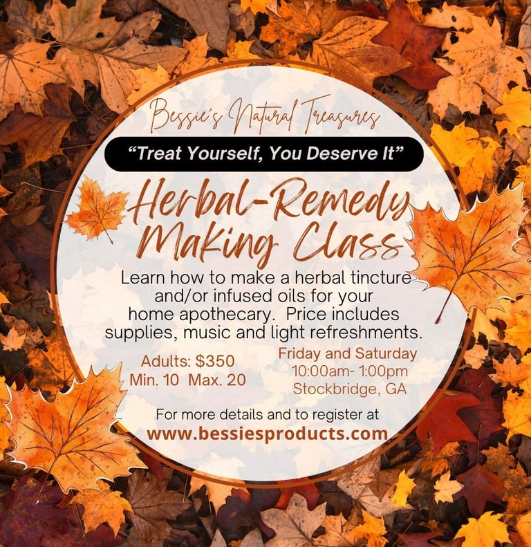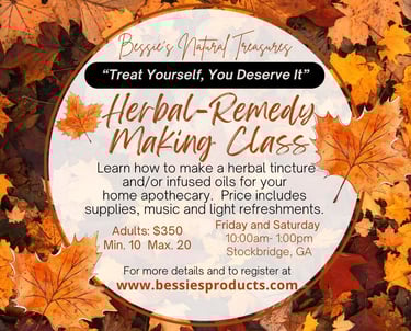 Bessie’s Natural Treasures offers luxury hand-poured jewelry, tealights, scrubs, face masks, body soaks, infused oils as well as herbal tea blends that love the skin and support the immune system.