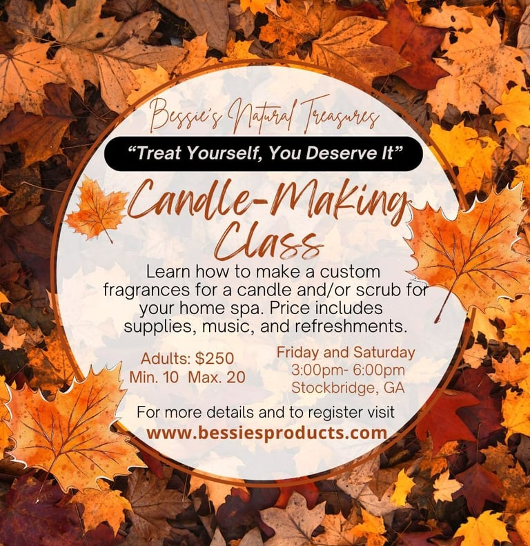 Bessie’s Workshops give participants a chance to have fun making candles, sugar scrubs, and herbal remedies for their home medicine cabinets.